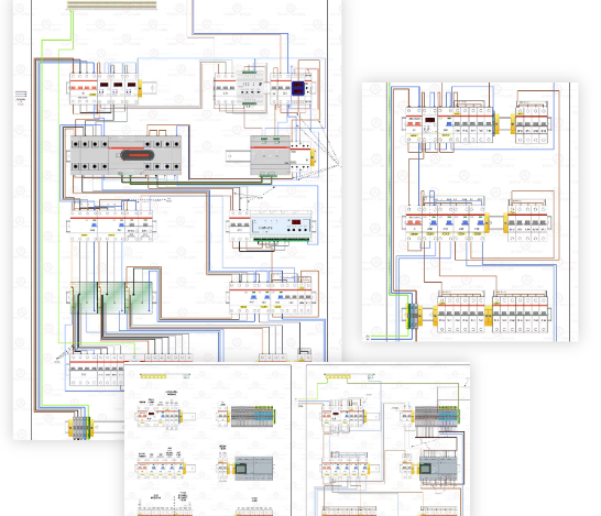 הדבר נעשה על מנת למזער את הסיכונים לטעויות שעלולות להיווצר בין שלבי התכנון לבין השקת לוח החשמל המוגמר לפעולה. התרשים מועבר באופן אלקטרוני בפורמט JPG (PDF לפי בקשה). התרשים מציין גם את כל קטעי הכבלים לקווים יוצאים וכל הציוד מסומן".