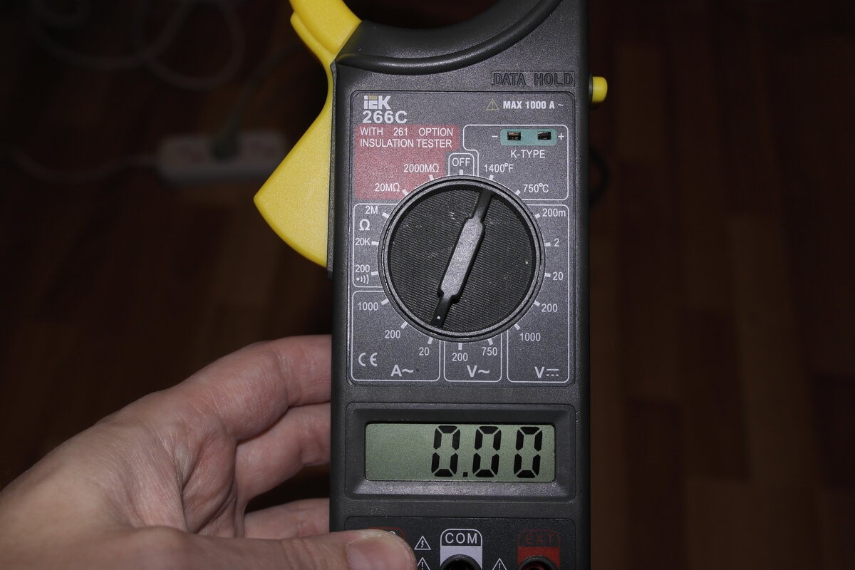 - עטוף את שני החוטים (פאזה ואפס) וקרא את הערך שנמדד. זו זליגת הזרם.
