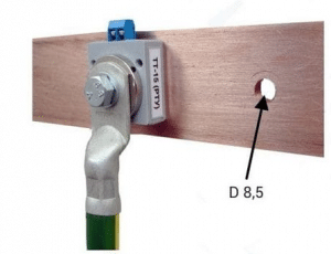במידת הצורך (חיבור גיד הארקה לפס הארקה), השנאי נמצא הותקן לפס DIN ישירות