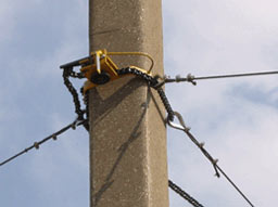 בעת ביצוע עבודות על קווי חשמל עיליים, אם יציבות ותמיכת העמוד מוטלת בספק, יש לחזק אותו באמצעות מכשיר חיזוק
