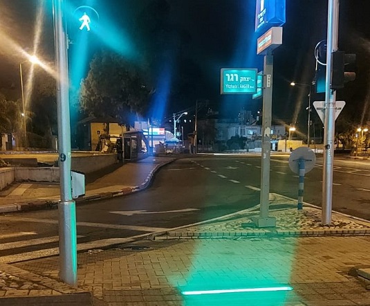 תאורת פס לד שמתריע בפני הולכי רגל לקראת מעבר חצייה.